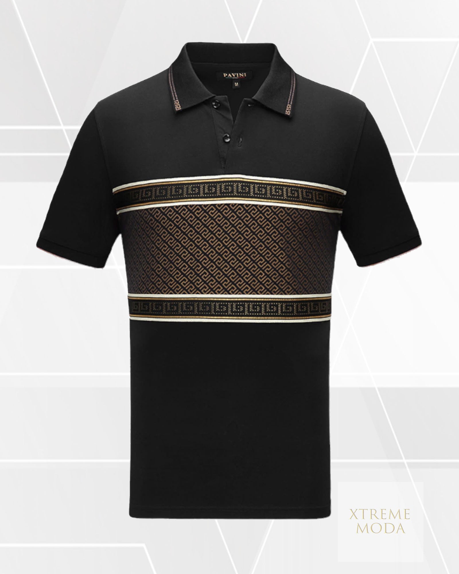 Fashion greek print polo shirt Blk